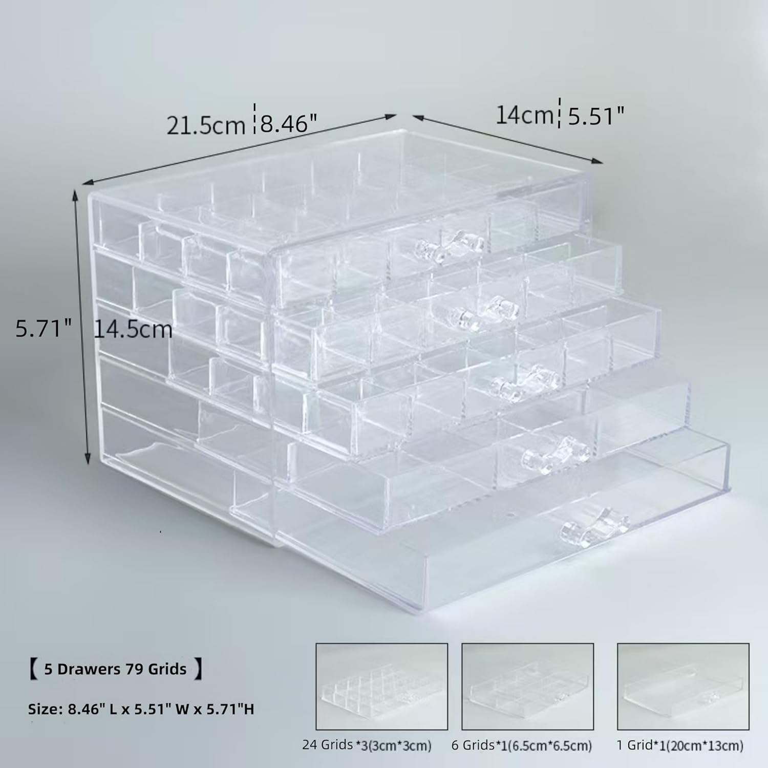 Feadily Acrylic Jewelry Organizer Box, Jewelry Drawer Organizer With 5 Drawers 79 Grids, Clear