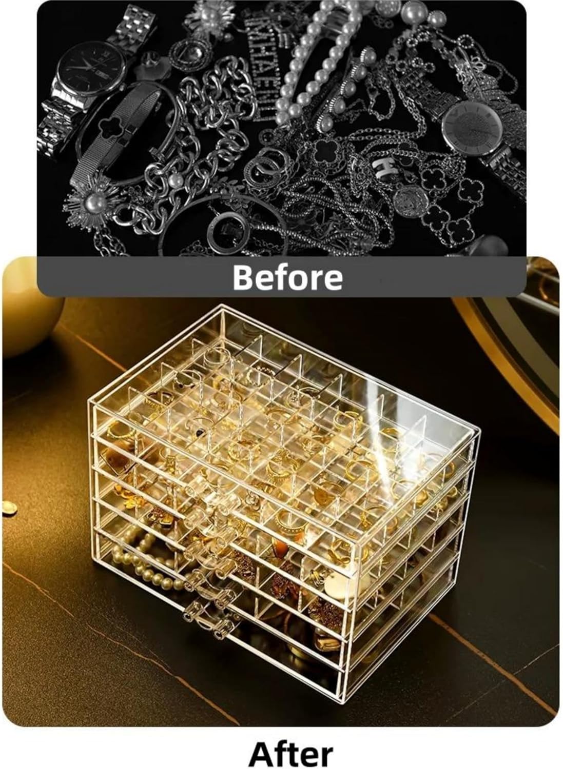 Sturdy and Durable: Made of durable clear acrylic, it is very durable and clear. Let you quickly find what you need with the clear Jewelry Organizer Box