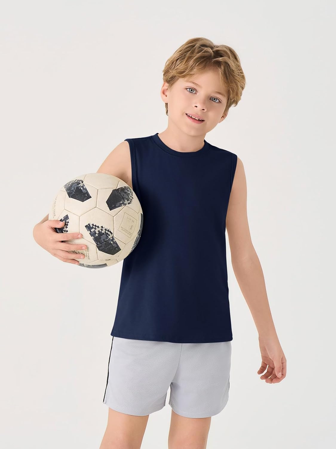 Haloumoning Boys Tank Tops Casual Sleeveless Crewneck Athletic Workout Tees Basic Solid Undershirts 5-14 Years