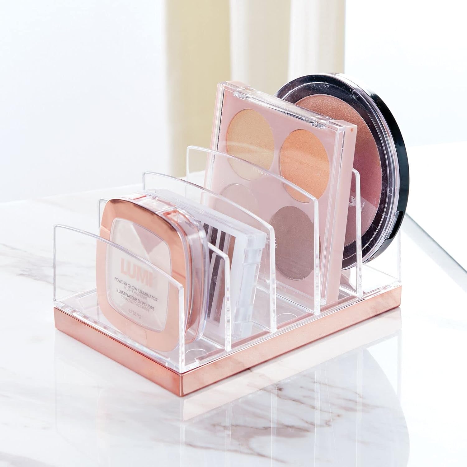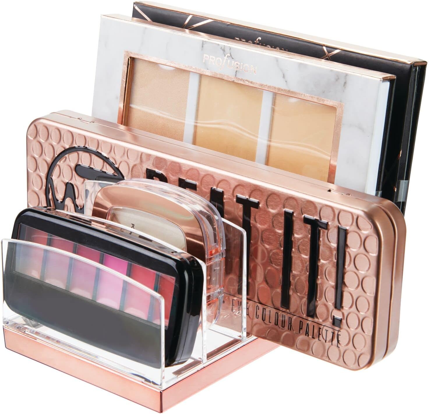 mDesign Plastic Makeup Organizer for Bathroom Countertops, Vanities, Cabinets: Cosmetics Storage Solution for – Eyeshadow Palettes, Contour Kits – 5 Sections – Lumiere Collection – Clear/Rose Gold