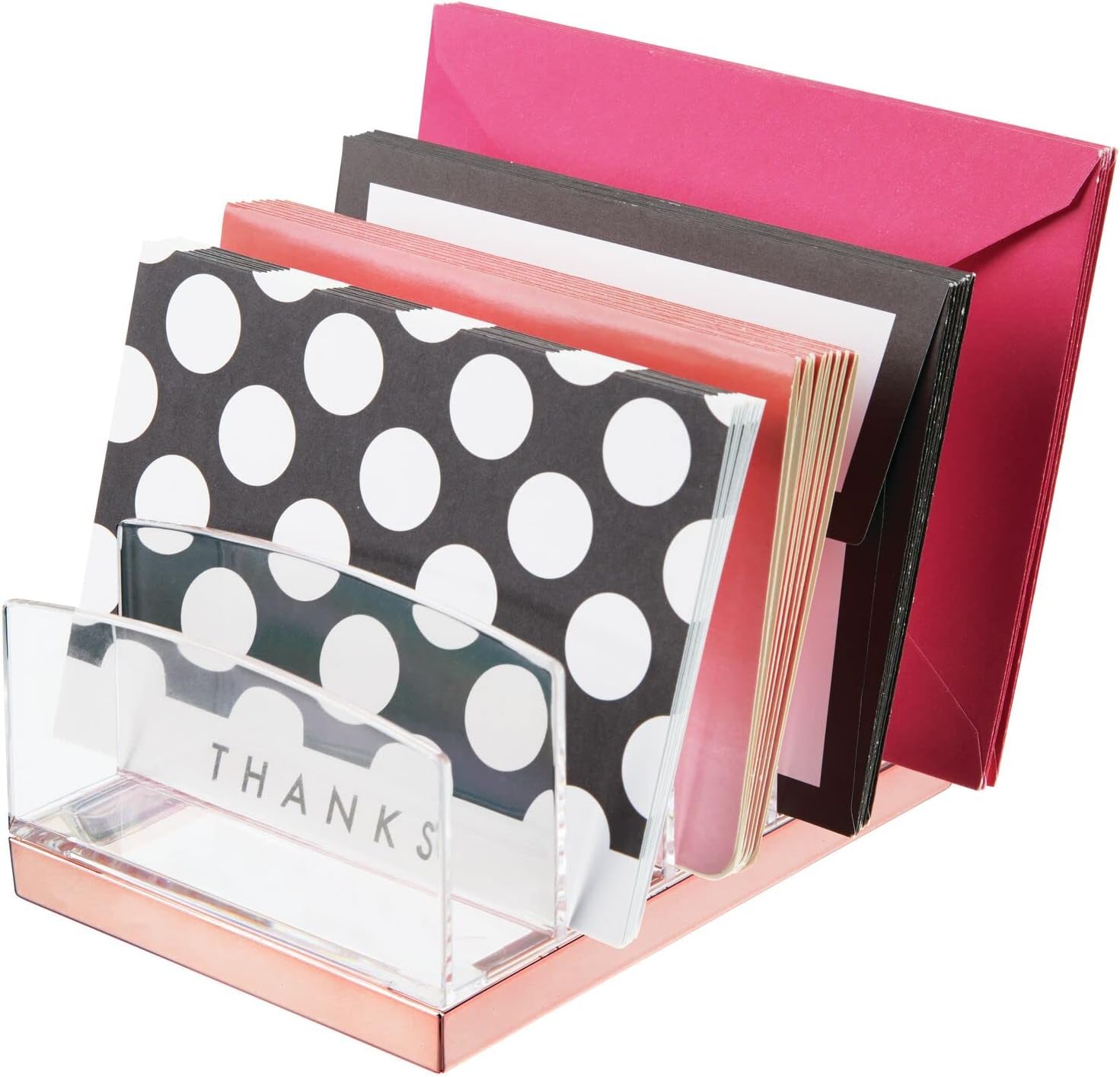 STORAGE MADE SIMPLE: Perfect for all of your cosmetic and makeup needs: eye shadows, contour palettes, lip kits, blush palettes, lip palettes, powders, foundations, eyebrow kits, bronzers and more will all be within easy reach; Holds extra large and small palettes all in one convenient location; mDESIGN TIP – Use on kitchen counter top to store recipes or grocery lists and coupons, on a desk to keep notecards and envelopes separated, or a craft room to keep scrapbooking and art paper organized