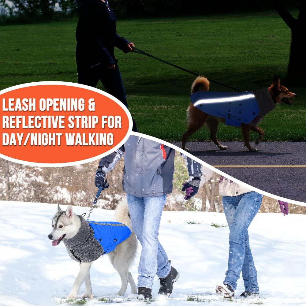 SlowTon Winter Dog Coat, Warm Polar Fleece Lining Doggie Outdoor Jacket with Turtleneck Scarf Reflective Stripe Adjustable Waterproof Windproof Puppy Vest Soft Pet Outfits (M+,Blue)