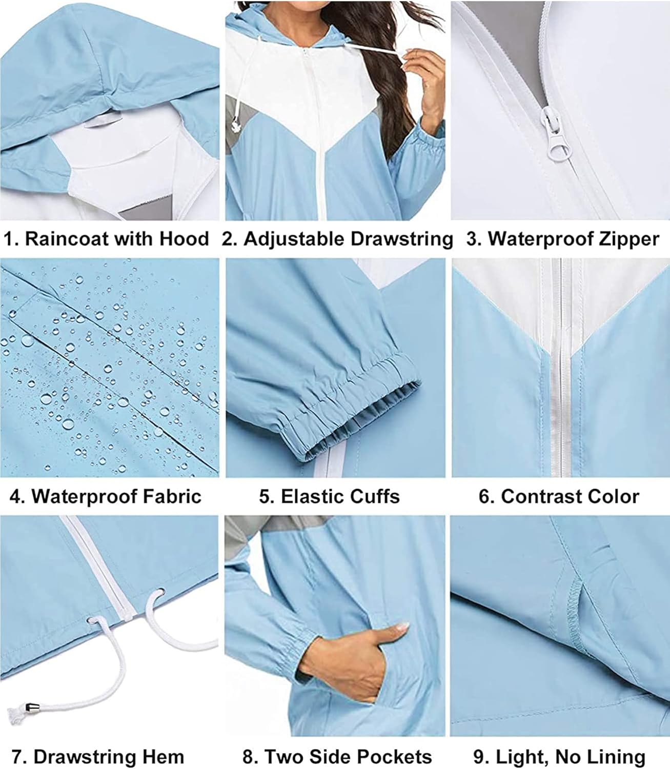 SoTeer Women’s Waterproof Rain Jackets Lightweight Hooded Windbreaker Packable Active Outdoor Raincoat